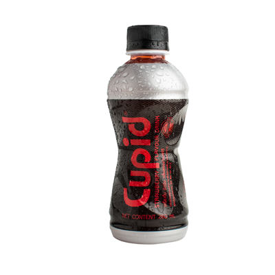 -ผลิตภัณฑ์เครื่องดื่ม คิวปิด กลิ่นสตรอเบอร์รี่ Cupid Strawberry Flavoured Drink ผสมสารสกัดจาก กัวราน่า ซึ่งให้คาเฟอินจากธรรมชาติ อุดมไปด้วยวิตามิน B6 B12 และ Zinc