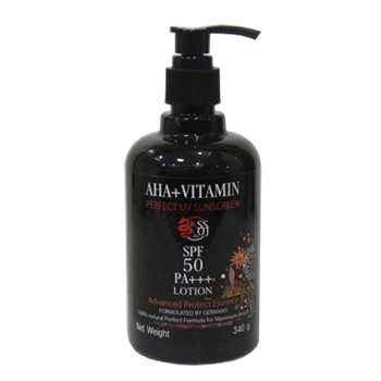 โลชั่นกันแดด AHA SPF 50 PA ปกป้องแสงแดดได้ถึง 50 เท่า ช่วยบำรุงผิวพรรณ ลดรอยหมองคล้ำ รอยด่างดำ ปกป้องผิวให้สวย กระจ่างใสตลอดวัน