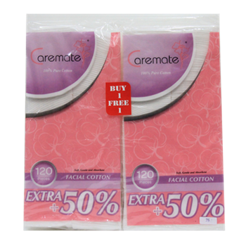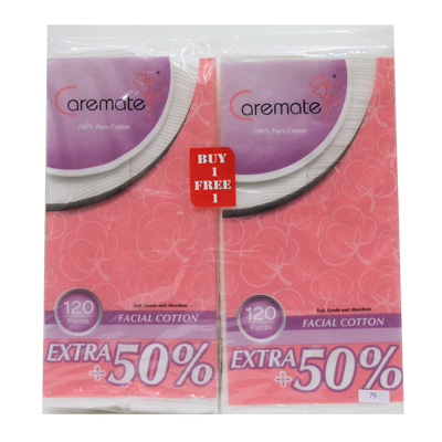 แคร์เมดสำลีแผ่น 120 ชิ้น+50% (ซื้อ 1 แถม 1)