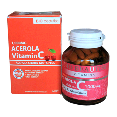 5.วิตามินซีที่ได้จากผลอะเซโรลาเชอร์รี่ 1000 มิลลิกรัม ช่วยเพิ่มฤทธิ์การดูดซึมแอลกลูต้าไธโอนได้ถึง 4 เท่า และช่วยส่งเสริมการทำงานของแอลกลูต้าไธโอนเพื่อให้ผิวขาวกระจ่างใสอมชมพูได้อย่างรวดเร็วและชัดเจนยิ่งขึ้น