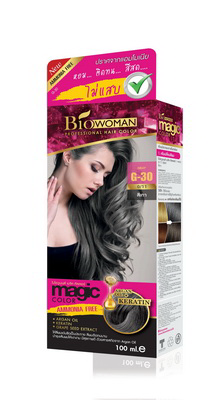 คุณสมบัติ -ครีมเปลี่ยนสีผม เพื่อความสวยงามของสีสัน ด้วยพลังความอัจฉริยะของ Argar oil และ Hydrolyzed Keratin เติมเต็มคุณค่าจากธรรมชาติของBiowoman Magic Color ด้วยสีสันที่สวย สด ไม่ใชเพียงเคลือบสีผม แต่สีติดทน เจิดจรัส โดดเด่น เป็นประกาย ดึงดูดทุกสายตา หอมละมุน ปราศจ