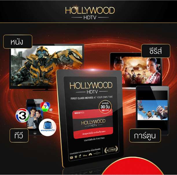 HOLLYWOOD HDTV คือแอพพลิเคชั่นที่ให้บริการดูภาพยนต์ออนไลน์ที่ผู้ใช้สามารถเลือกชมภาพยนต์ฮอลีวูด ภาพยนต์ไทย ภาพยนต์เอเซีย การ์ตูน และซีรีย์อีกมากมายหลายพันเรื่องได้ทุกที่ ทุกเวลา สามารถดูได้ทั้งในโทรศัพท์มือถือสมาร์ทโฟน แท็บเล็ต