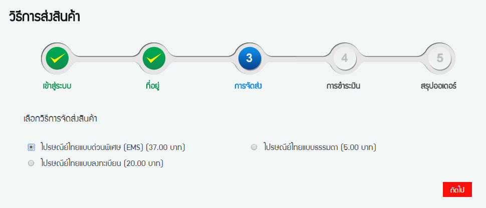 6. ต่อมาเลือกประเภทการจัดส่ง และกด ถัดไป