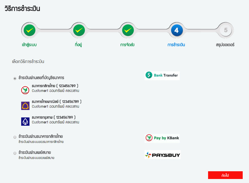 7. จากนั้นเลือกช่องทางการชำระเงิน และกด ถัดไป