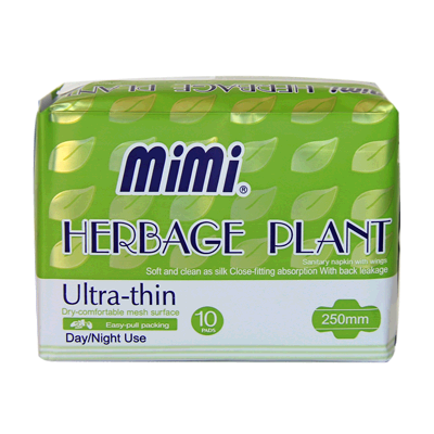mimiผ้าอนามัยมีปีกแบบบางพิเศษ ผิวหน้าตาข่าย กลิ่นพืชสมุนไพร 250mm