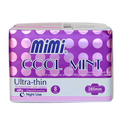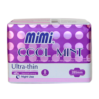mimiผ้าอนามัยมีปีกแบบบางพิเศษ ผิวหน้านุ่ม กลิ่นมิ้นท์สดชื่น ใช้กลางคืน 285mm 8 ชิ้น